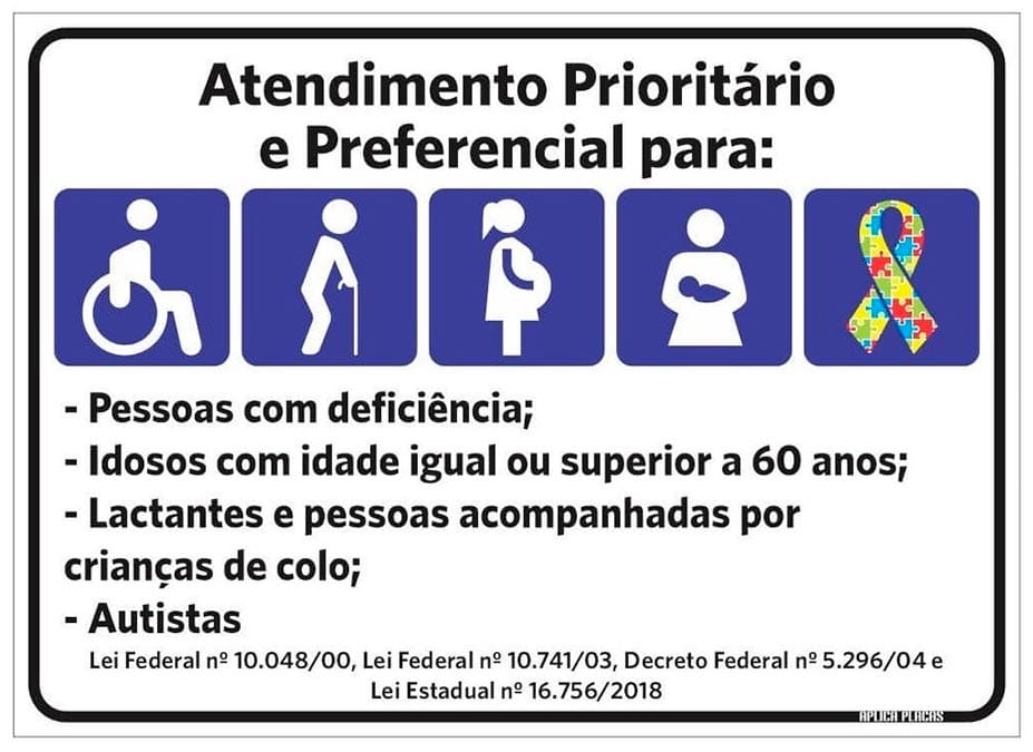 ATENDIMENTO prioritário. Direitos e autismo. 2020. Disponível em: https://www.direitoseautismo.com.br/atendimento-prioritario/. Acesso em: 24 mar. 2024.